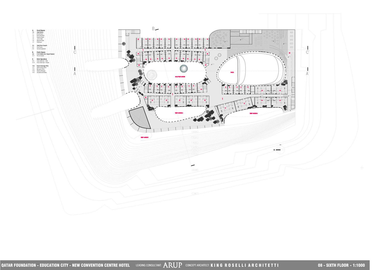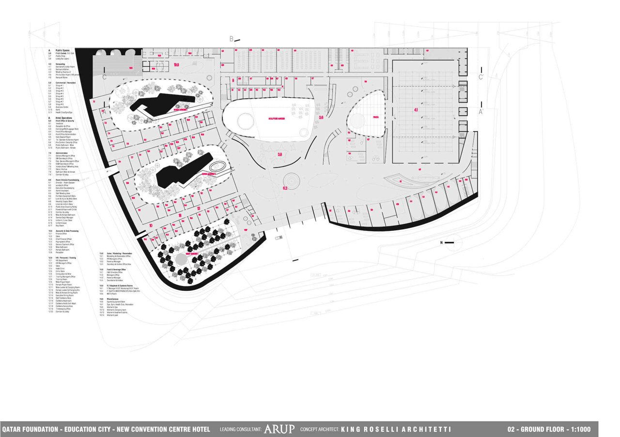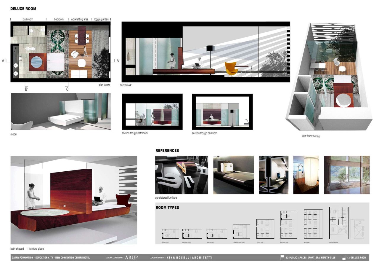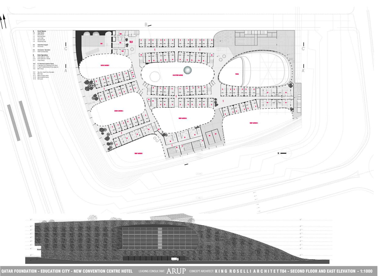 Hotel for the new National Convention Centre (designed by Arata Isozaki) of Doha Education City. 405 rooms, convention centre, spa, sports facilities, shopping facilities and 3 restaurants.